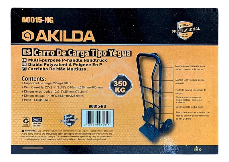 Carro Carretilla De Carga Yegua De Mano 350 Kg Akilda