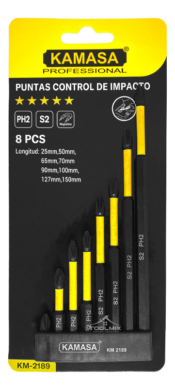 Set 8 Puntas De Impacto Magnéticas Ph2 S2 25-150mm Kamasa